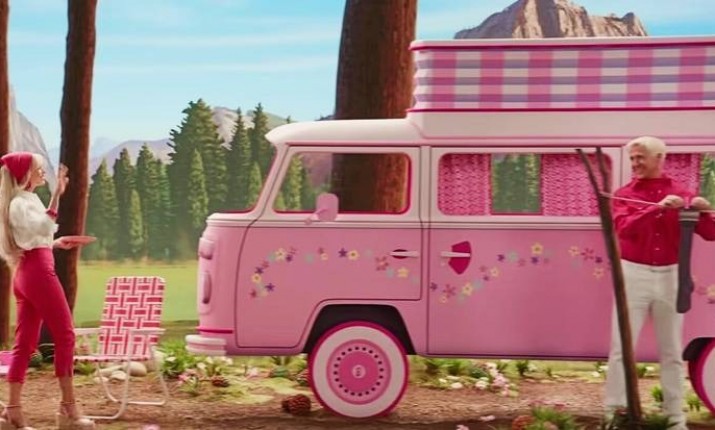 В одной из сцен Кен сушит носки. Он одет в темно-розовую рубашку на пуговицах и белые брюки. Этот уморительно безвкусный наряд без каких-либо атрибутов, необходимых для выживания на природе, возможно, символизирует, насколько Кен не готов к жизни в нашем мире. Однако костюм прекрасно сочетается с походной одеждой Барби, а для их действительности это, возможно, главное.
