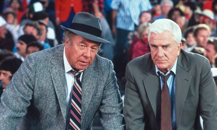 По своей сути «Голый пистолет» — это детективная история, жанр, который высмеивали много раз, но никогда с таким размахом, как в этом фильме. Сюжет вращается вокруг лейтенанта Дребина — человека, который посвящает себя раскрытию преступлений с максимальной серьезностью, но совершенно не способен делать это с должным мастерством и профессионализмом. Нашему невдалому супермену поручают сорвать заговор с целью убийства королевы Елизаветы II во время ее визита в Лос-Анджелес. История быстро превращается в хаотичную смесь полицейского процедурала, дурацких ошибок и совершенно неуместных выходок, но при этом сохраняет атмосферу искренности благодаря лицу Нильсена. Фильм поступает мудро, не слишком углубляясь в тонкости сюжета. Вместо этого он фокусируется на абсурдности ситуации и бестолковости персонажей. Зрителям будто говорят: «Мы знаем, что сюжет слабый, но вы же пришли не за этим, а просто посмеяться, верно?». И мы смеемся — с самого начала и до культового финала на бейсбольном стадионе. Будь то визуальный прикол или остроумная реплика в диалоге, каждая сцена наполнена юмором. Сюжет прост, как табуретка, но тем и гениален: он не отвлекает от потока порой совершенно идиотских шуток, а служит для них идеальной рамкой.