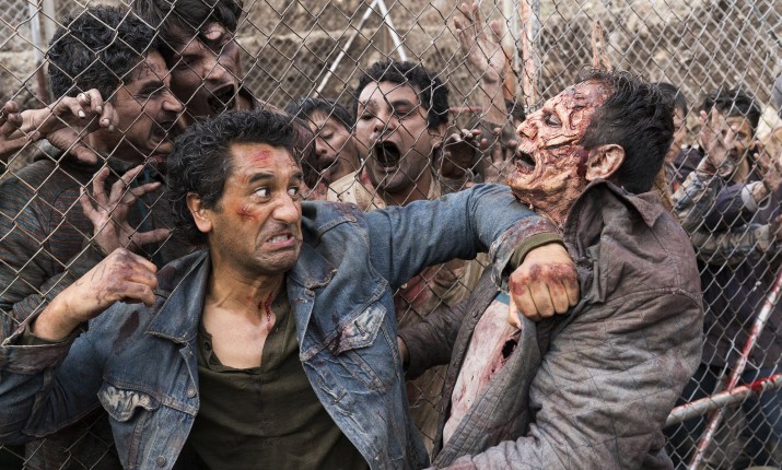 Канал AMC продолжает радовать поклонников драмы «Бойтесь ходячих мертвецов» промо-материалами к третьему сезону. Вслед за тизером на просторах Интернета обнаружились новые кадры из грядущих эпизодов. И если в недавнем ролике главным истребителем ходячих явно была Мэдисон, то на представленных фото она выглядит довольно умиротворенно, а вот Трэвис, наоборот, пытается отбиться от орды оживших мертвецов.