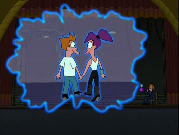 Отношения Фрая и Лилы вызывают у поклонников самые сильные эмоции, особенно когда драма и судьба объединяются, чтобы разлучить пару. Сюжет серии “Опаздывающий Филип Джей Фрай” завязан на путешествиях во времени. Фрай пишет для Лилы сообщение на поздравительной открытке, в котором извиняется за опоздание на свидание из-за опытов Профессора с машиной времени. Как всегда, эксперимент идет не по плану: Профессор, Фрай и Бендер отправляются далеко в будущее и вынуждены перемещаться все дальше и дальше в поисках способа вернуться назад. Из-за трагедии на вечеринке роботов, произошедшей в судьбоносный день, их считают погибшими. Гораздо позже открытка с извинениями вылетает из временной воронки, попадает в руки Лилы и разбивает сердце уже взрослой женщины еще раз: все эти годы она злилась зря. Несмотря на сотни и тысячи лет между ними, девушка оставляет возлюбленному ответное сообщение, которое ему суждено прочитать в далеком будущем. Лила его простила.