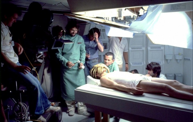 Особенность Ридли Скотта как режиссера состояла в том, что он не ограничивался только режиссерскими обязанностями. Он был везде: у окуляра кинокамеры, в монтажной, на площадке с актерами, в мастерской, где создавались макеты «Ностромо», и в студии, в которой строили декорации инопланетного корабля по эскизам Гигера. Мрачные интерьеры давили на психику актеров, которые порой находились на грани нервного срыва. Например, когда готовили сцену с «рождением» Чужого из груди Кейна, актеров отправили «покурить», так что кровавая сцена, снятая одним дублем, позже оказалась для них полной неожиданностью. При этом у Вероники Картрайт случилась самая настоящая истерика.