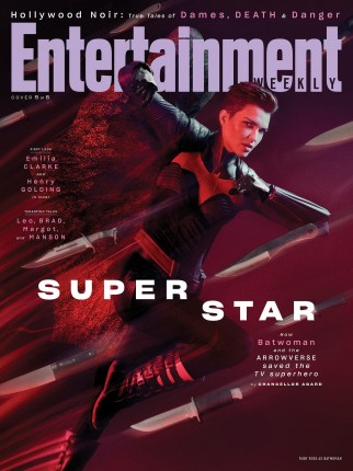 Потенциально опасная идея пришла команде EW и для промо Зеленой Стрелы. С другой стороны, за восемь лет Стивен Амелл уже сотни раз позировал с луком и стрелами и, должно быть, утомился от этого. Потому для него нужно было придумать что-то новенькое, сложное и бросающее вызов. Карлосу вспомнилась знаменитая обложка Esquire, на которой великий Мухаммед Али стоит со связанными за спиной руками, а из его тела торчат несколько стрел. «Но мы не хотели аналогичным образом застрелить Оливера Куина, ведь он все-таки супергерой, — комментирует художественное решение Серрао. — Вместо этого Уорд вонзил множество стрел по силуэту Стивена в стену за его спиной». Таким образом фотограф и его команда подчеркнули неуязвимость полюбившегося зрителям персонажа.