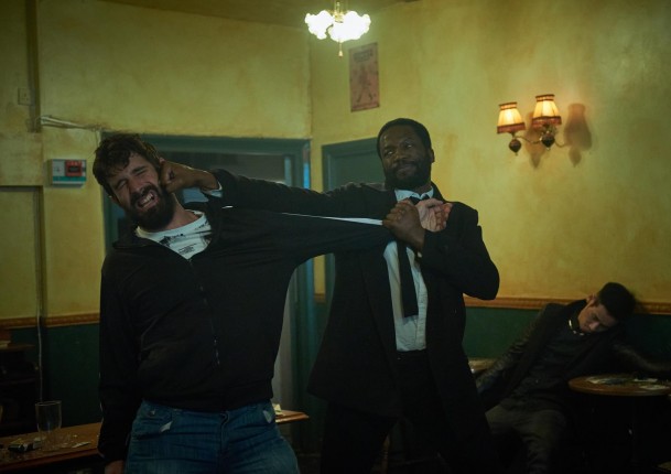 Спустя несколько минут после сцены прощания случается первая и очень серьезная драка. Эллиот Финч в исполнении Сопе Дирису, один из ключевых персонажей, вступает в бой с толпой албанцев в пабе, имея при себе лишь верные кулаки, сильные ногами, пепельницу и дротик. Тот, кто смотрел «Рейд», сразу поймет, что было дальше. Кто не смотрел, добро пожаловать. «Дикая, сумасшедшая драка, — говорит Эванс, — лихо и безумно, и это приятно». Очоа добавляет: «По сути, это авторский взгляд Гарета на то, как может выглядеть лондонская гангстерская драма».