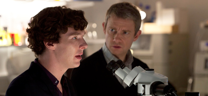 гламур, пафос и маразм крепчают, но тут приходит Монморанси, простите, Мориарти в образе Джокера, и приносит с собой пять минут драматизма... выставляет Шерлока SHER-LOCKED Бэтманом, Черный плащ прилагается.