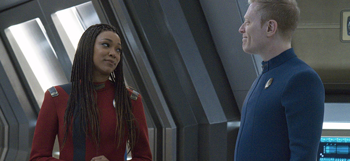 Первого офицера срочно вызывают на мостик, но Сару продолжает болтать и потом уходит пешком, а не телепортируется...