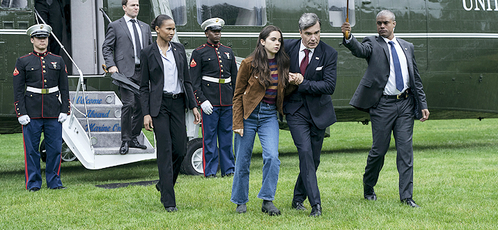1) Сначала начали "просто показывать" ("вводить в кадр") вице-президента (которого сейчас дочерью шантажировали) - мне мгновенное стало все ясно ("кто главный злодей") - дело в том, что этот высокий мужчина - обладает весьма примечательной и запоминающейся внешностью, и стиль его роли (умный, спокойный начальник-заговорщик зловещих сил Зла) - уже ранее использовался в сериалах.